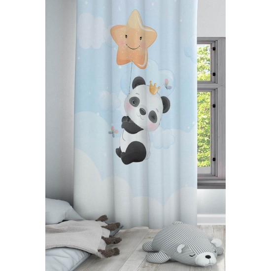 Yıldızlı Bulutlu Panda Desenli Dekoratif Çocuk Ve Bebek Odası Fon Perde